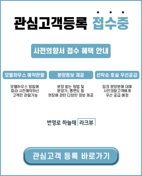 『번영로 하늘채 라크뷰』 개인정보 수집 및 이용목적이 달성된 후에는 해당 정보를 지체 없이 파기합니다.